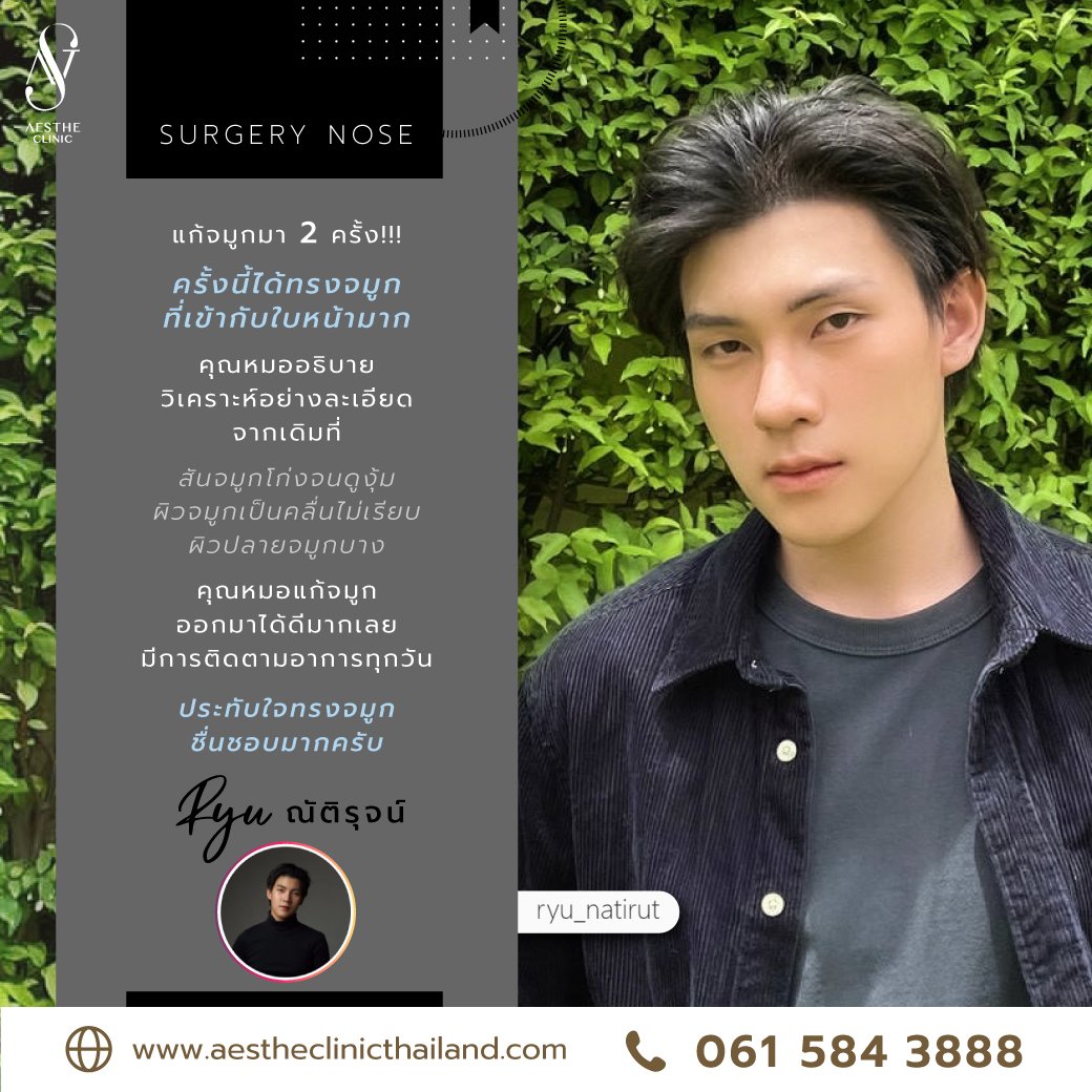 ที่ริวอยากแก้จมูกใหม่เพราะว่า จมูกที่เคยแก้มา 2 รอบ ยังรู้สึกยังไม่ได้ตามที่ต้องการสักเท่าไร จมูกยังดูงุ้ม ทรงจมูกยังไม่สวย หน้ายังดูดุอยู่ เป็นสาเหตุที่ริวเลือกที่จะแก้จมูกใหม่ที่เอสเธ่คลินิก
