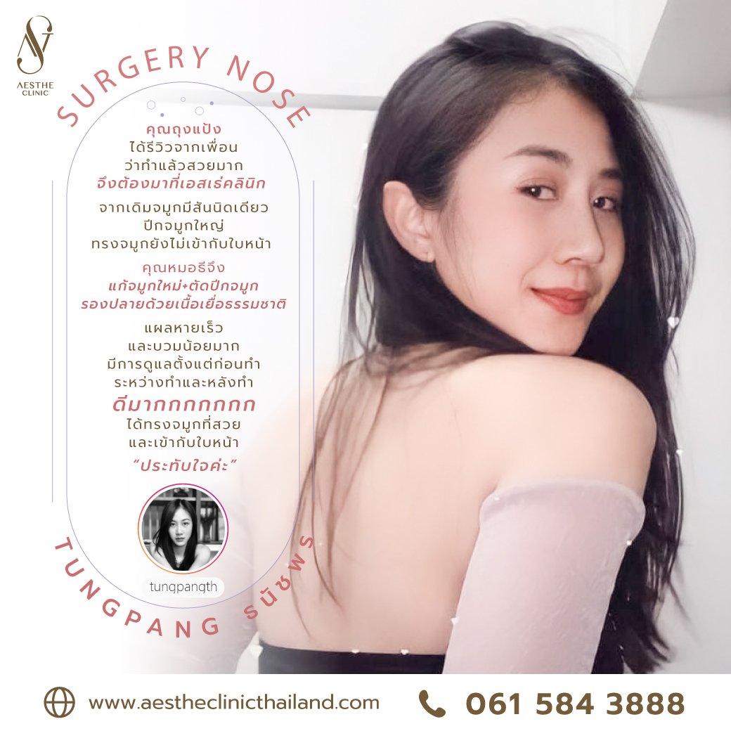 สวัสดีค่า ชื่อถุงแป้ง ธนัชพร นะคะ ถุงแป้งจะมารีวิวการทำจมูกกับหมอธี ที่เอสเธ่คลินิก ต้องบอกก่อนนะคะว่าถุงแป้งทำงานเป็น Account Executive ที่ต้องทำงานพบปะผู้คนจำนวนมาก เลยอยากแก้จมูกให้ตัวเองรู้มั่นใจมากขึ้น ถุงแป้งเป็นเคสแก้จมูก ซึ่งจมูกเดิมคือ มีปีกจมูกที่ใหญ่ มีสันจมูกนิดเดียว คือถ้าใส่แว่น แว่นตกเลยค่ะ555 และทรงจมูกยังไม่ค่อยสวยเท่าไหร่ด้วย เลยตัดสินใจเข้ามาปรึกษาคุณหมอ ที่เอสเธ่คลินิก