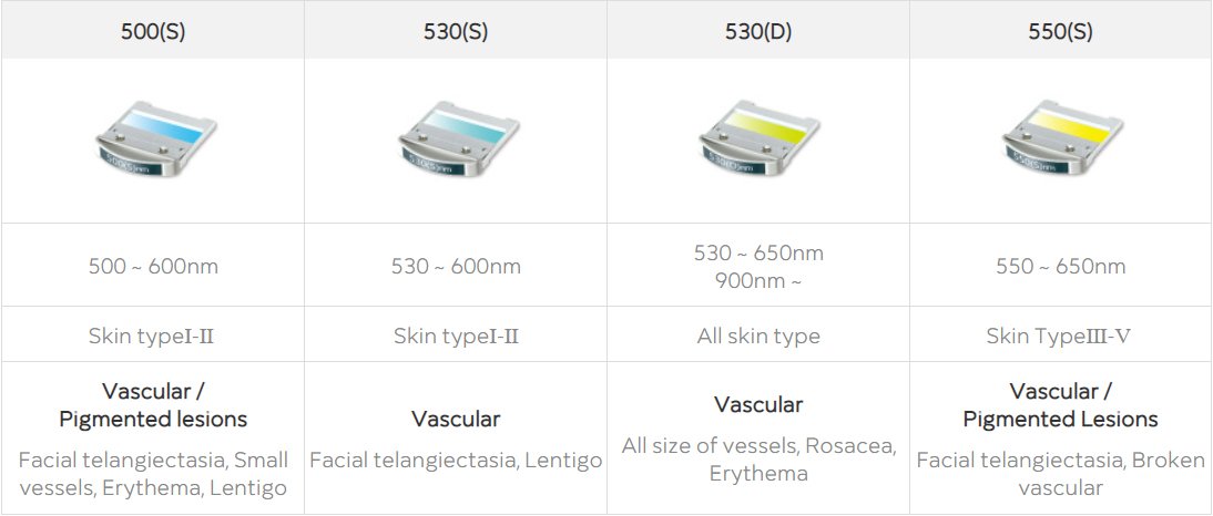 Cut-off filtering : การตัดช่วงคลื่นแสงอย่างแม่นยำ ช่วยให้ปล่อยเฉพาะคลื่นลำแสงที่ต้องการมายังผิวหนัง ทำให้รักษารอยโรคได้มีประสิทธิภาพ, ปลอดภัยและไม่มีผลข้างเคียง และยังมีผลช่วยกำจัดแบคทีเรียก่อสิวอีกด้วย (P.Acne)